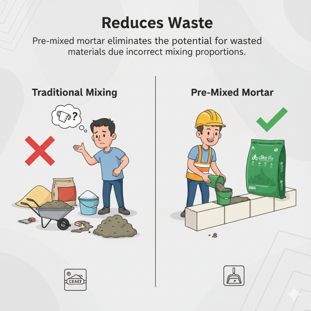 Pre-mixed mortar eliminates the potential for wasted materials due to incorrect mixing proportions.